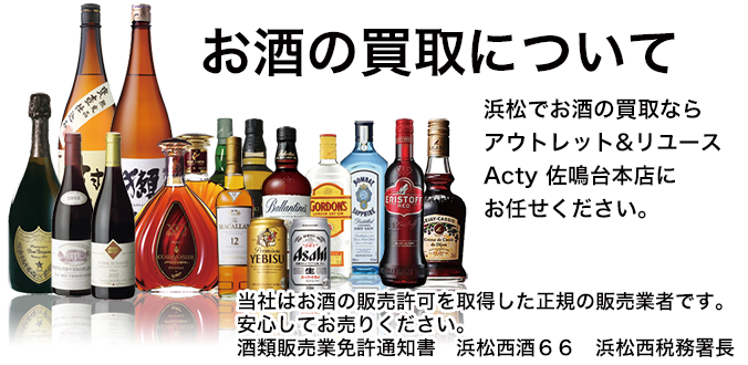 アウトレット&リユース Acty佐鳴台本店ならお酒の買取いたします。